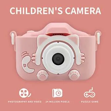 Show more This cutting-edge kids digital camera is a perfect blend of fun and functionality, designed with little photographers in mind. Featuring dual cameras with a remarkable 24 million pixels, the camera provides stunning clarity whether you're capturing fleeting smiles or scenic shots. With its 1080P video recording capabilities and 2.0-inch HD IPS eye protection screen, children can confidently explore their creativity while keeping their eyes safe from strain. The camera's auto focus and 8x digital zoom features ensure that no moment is too far away to capture.