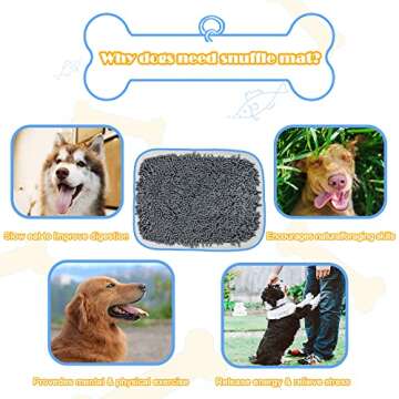 Snuffle Mat for Dogs, 17'' x 21'' Dog Feeding Mat, Enrichment Foraging Mat for Smell Training and Slow Eating, Stress Relief, Encourages Natural Foraging Skills, 2 Suction Cups, 2 Ropes, 1 Licking Mat