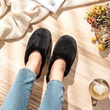 Snug Leaves Women's Fuzzy Scuff Slippers Soft Comfy Memory Foam Non-slip Indoor House Shoes (Black, Size 7-8)