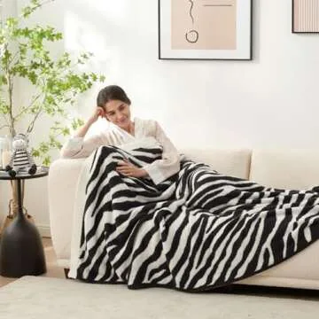 Snuggle Sac Zebra Blanket Black Zebra Print Blanket Ultra Soft Reversible Zebra Throw Blanket for Couch, Sofa & Bed, 50x60 inches