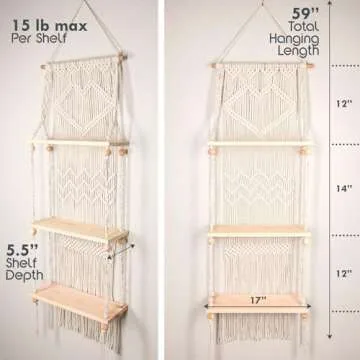 This macrame shelf is not just about looks; it's built to last with premium wood shelving that showcases a stunning natural finish. Although it does not come with a hanging hook, its easy-to-hang design ensures that you can set it up in no time, allowing for an effortless upgrade to your decor. Reviewers have noted its sturdiness and aesthetic appeal, mentioning how it looks great while standing up to everyday use.