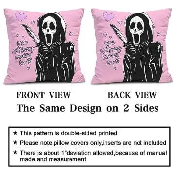 Why You Will Love This Product? Adding the Snycler You Like Scary Movies Too Pink Ghost Scary Face Throw Pillow Cover to your home brings a sense of joy, fun, and a playful spirit. It not only invites a lighthearted ambiance but also encourages conversations about shared interests and celebrated traditions. This charming decorative piece invites not just warmth into your dwelling but also sparks laughter among friends and family, marking it as an essential element for the social butterfly in every home.