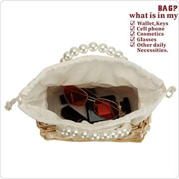 So'each Women's Handmade Rattan Wicker Lace Woven Pearl Shoulder Bag