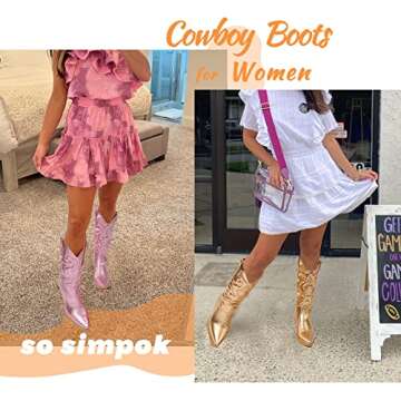 Embrace Your Inner Cowgirl: With SO SIMPOK Cowboy Boots, you empower your personal style while indulging in ultimate comfort. Each step feels light and confident, transforming every outfit from simple to extraordinary. Perfect for expressing your unique style, these boots are a must-have in your wardrobe collection. Get ready to receive compliments and inspire others with your fashion-forward approach!