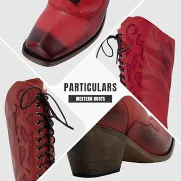 SO SIMPOK Womens Retro Cowboy Boots Lace Up Mid Calf - Stylish and Vegan-Friendly