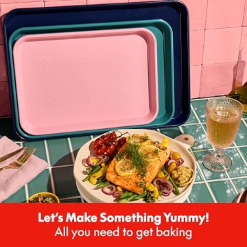 Show more If you’re looking to elevate your baking experience, the So Yummy by Bella 3 Piece Cookie Pan Set is your ultimate kitchen companion. This vibrant set includes three perfectly sized baking pans - 9”x13”, 10”x15”, and 12”x17” - ensuring that whether you’re whipping up a small batch of cookies or preparing a feast for the whole family, you have the right tool for the job. Crafted with a colorful, nonstick coating, these pans not only make baking a breeze but also ensure that cleanup is just as easy, giving you more time to enjoy your delicious creations. Made without PFAS for safety and peace of mind, these pans allow you to bake every treat with confidence.