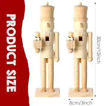 Show moreBring the magic of creativity home with the Soaoo 2 Pcs Large Christmas Wooden Unfinished Nutcrackers. These charming, 12-inch nutcracker figures are crafted from high-quality, durable wood, ensuring they stand the test of time as delightful decorations for your holiday celebrations. Perfectly sized at 3 x 12 inches, they offer ample space for your artistic expression while serving as eye-catching home and office decor. Whether placed on a shelf, desk, or as part of a festive display, these nutcrackers create a warm and inviting atmosphere during the holiday season.