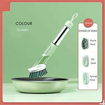 Soap Dispensing Dish Brush, 3-in-1 Kitchen Brush Set Scrub Brush with Hook for Pot Pan Dishes Sink Cleaning DR0190 Green