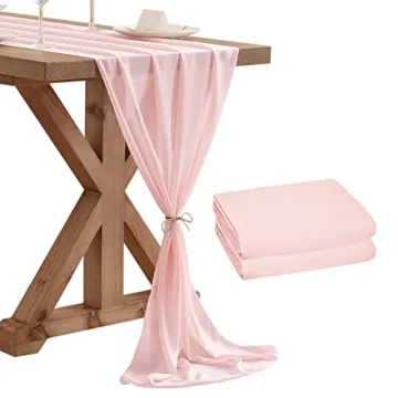 Socomi 2pcs Blush Pink Chiffon Table Runner Bulk 29x120 Inches Rustic Wedding Table Runner for Bridal Shower Wedding Party