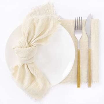 Show moreElevate your dining experience with the exquisite Socomi Set of 12 Linen Napkins. Designed with a commitment to quality and aesthetic appeal, these napkins are crafted from high-quality, thick, and wrinkle-free cotton that ensures lasting durability and an elegant presentation at every meal. Measuring at a generous 17"x17", each napkin is hand-dyed using natural materials, infusing a unique touch that complements any table setting. The standout feature of this set is the carefully hand-pulled fringes on all four sides, measuring 0.5", providing a rustic and vintage charm that enhances your dining decor, making each meal feel like a special occasion.