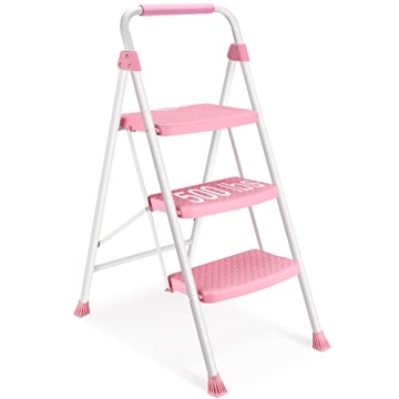 SocTone 3 Step Ladder - Sturdy Folding Step Stool with Safety Features
