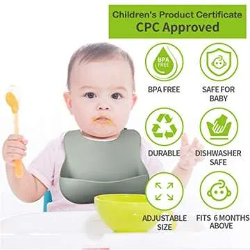 Socub Silicone Baby Bibs, Super Soft Adjustable Baby Feeding Bibs with Food Catcher Pocket for Infants and Toddlers, Sage