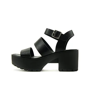 Show moreIntroducing the Soda Women Open Toe Two Bands Lug Sole Fashion Heel Sandals—the perfect footwear for those who crave unparalleled style combined with everyday comfort. These stunning sandals feature a breathable lining that keeps your feet cool during warm weather, making them your go-to choice for summer outings. With a platform height of 1.5 inches and an overall height of 2.75 inches, you get just the right amount of elevation without losing stability. Designed for effortless wear, the slip-on style, secured with an adjustable ankle strap and buckle closure, ensures a snug and personalized fit.