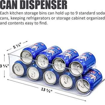 Soda Can Organizer for Refrigerator - 4 Pack Clear Plastic Beverage Holder & Food Dispenser BPA Free Fridge Organizer Bins for Freezer, Kitchen, Countertops, Cabinet, Pantry Organization and Storage