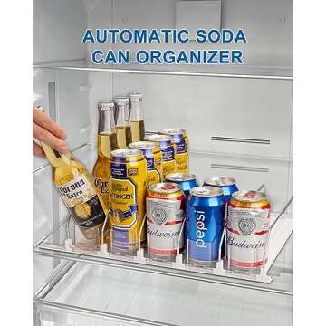 Soda Can Organizer for Refrigerator, 5 Rows Automatic Drink Dispenser for Fridge, Width Adjustable Soda Can Dispenser for Refrigerator, Beer Pop Can Water Bottle Storage for Pantry (White, 12.2"Deep)
