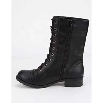 Soda Dome Mid Calf Height Women's Military / Combat Boots in Black - Stylish Comfort