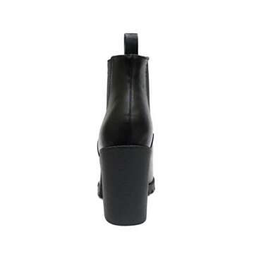 Soda Glove - Ankle Boot w/Lug Sole Elastic Gore and Chunky Heel (7, Black (PU))