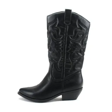 Show moreThe Soda Rerun Western Boots are the perfect fusion of style and comfort for fashion enthusiasts. Crafted from high-quality faux leather, these boots are designed with a trendy western stitch detailing that adds a classic touch to any outfit. The pointed toe and block heel not only enhance the aesthetic appeal but also provide a secure and comfortable fit.
