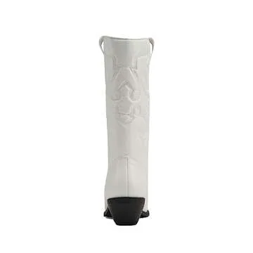 Soda Reno Women Western Cowboy Pointed Toe Knee High Pull On Tabs Boots (White Pu/Black Heel, US Footwear Size System, Adult, Women, Numeric, Medium, 10)