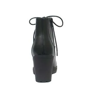 Soda Second Lug Sole Chunky Heel Combat Ankle Boot Lace Up with Side Zipper (8, Black PU)