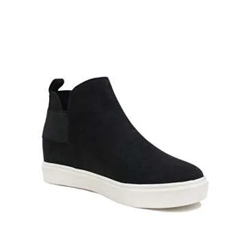 Show moreIntroducing the stylishly crafted Soda Style Diana Slip On Hidden Wedge Ankle Boot Fashion Sneaker, a perfect fusion of comfort and modern fashion. These ankle boots boast an impressive 3 1/4" shaft height and a 1" + 1" hidden wedge that elevates your overall look without compromising on comfort. The pull-on design features elastic gore insets which make slipping in and out of these chic shoes an effortless experience. Whether you're running errands or dressing up for a dinner date, this footwear pairs perfectly with both casual and dressy outfits, ensuring your style game is always on point.