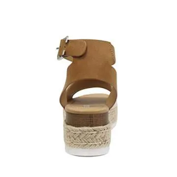 Soda Topic Open Toe Buckle Ankle Strap Espadrilles Flatform Wedge Casual Sandal (Beige Canvas/Tan, us_footwear_size_system, adult, numeric, medium, 7.5)
