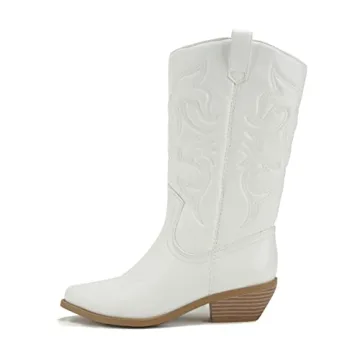 Soda Women's Cowgirl Cowboy Boots - Pointy Toe Knee High, Reno-S, Size 7.5, White/Beige
