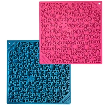 Show more Discover the ultimate enrichment experience for your furry friend with the SodaPup Pink & Blue Jigsaw eMat Bundle. Designed specifically to provide your dog with challenging and engaging licking activities, this durable rubber mat set includes two unique jigsaw designs that will keep them entertained for hours. Each mat measures a generous 8" x 8", allowing ample space to spread soft treats and entice your pup to lick, savor, and enjoy. Crafted from proprietary TPE (thermoplastic elastomer) material, these mats offer exceptional durability while being safe for everyday use.