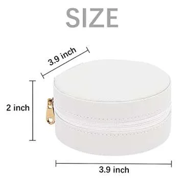 Soddeph Travel Jewelry Box, Mini Portable Organizer Travel Case with Zipper, Faux PU Leather Small Storage Boxes for Rings, Earrings, Necklaces, Bracelets, Gift for Women Girls (Round-White)