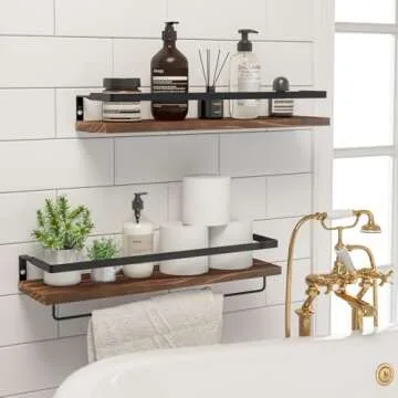 Measuring 16.53 x 5.83 inches with a robust board thickness of 0.67 inches, these shelves offer an ideal solution for various settings. Whether you need a chic way to organize your seasoning bottles in the kitchen or a stylish spot to showcase toiletries in the bathroom, these shelves are designed to do it all seamlessly. The removable towel holder adds further versatility, fitting beneath or beside the shelf to tailor to your bathroom layout.