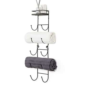 SODUKU Towel Rack Multifunctional Wall Mount Towel Wine Rack with Top Shelf Metal Towel Racks Storage Organizer Holder for Bathroom Bath Kitchen Black