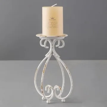 Show more Transform your living space with the exquisite SOFE Farmhouse Cast Iron Candle Holder. Designed to evoke a sense of rustic charm, this distressed white pillar candle holder features organic and artisanal details that elevate any decor. Measuring 4.2" x 4.2" x 6.5", it is the perfect height to create a warm and inviting ambiance in any room. Crafted from premium metal materials, each candle holder not only boasts sturdiness but also showcases a unique vintage aesthetic that can complement modern or traditional settings alike.