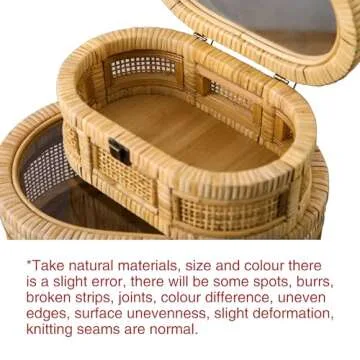 SOFE Oval Rattan Boxes with Glass Lid Set of 2, Farmhouse Stacking Decorative Boxes for Home Decor Organizers, Handwoven Boho Storage Bins, Thanksgiving, Christmas, Housewarming Gifts