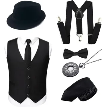 Show moreStep into the spotlight and relive the elegance of the Roaring Twenties with the Soffpjy 1920s Men's Costume Gatsby Gangster Accessories Set. Designed for those looking to capture the essence of the era, this set is meticulously crafted to transport you back to the flapper and jazz age. Perfectly suited for themed parties, Halloween celebrations, or even special anniversaries, this ensemble boasts everything you need to channel your inner Gatsby. With a stylish and sophisticated Manhattan Fedora Hat, an elegant 1920s Gangster Vest, and a selection of ties, you'll be the center of attention at any event. Made with premium materials, every piece guarantees a comfortable fit and durable wear, ensuring you can enjoy yourself throughout the festivities.