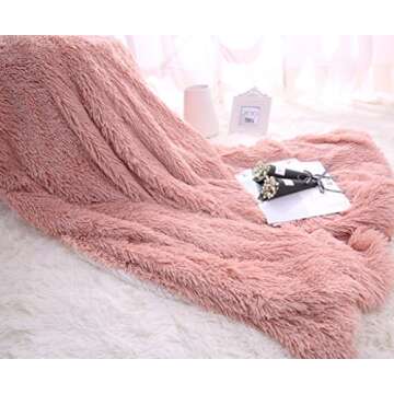 Soffte Cloud Super Soft Long Shaggy Warm Plush Fannel Blanket Throw Qulit Cozy Couch Blanket for Winter Dirty Pink(51"x63")