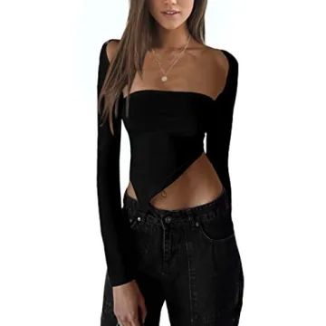 SOFIA'S CHOICE Bolero Top for Women Asymmetrical Hem Sexy Long Sleeve T Shirt Black Small