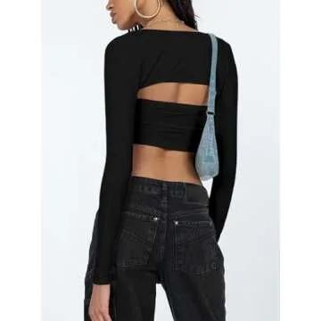 SOFIA'S CHOICE Bolero Top for Women Asymmetrical Hem Sexy Long Sleeve T Shirt Black Large