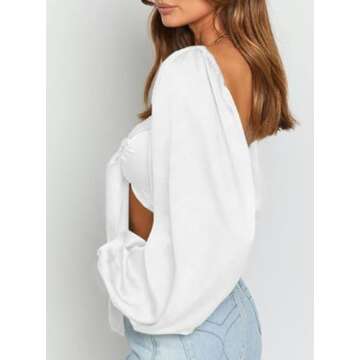 SOFIA'S CHOICE Women's Sweetheart Neckline Top Tie Front Long Sleeve Blouse Crop Shirt White Large