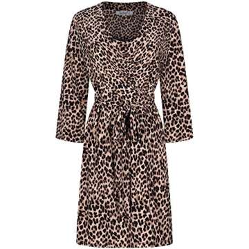 SofiePJ Women's Drawstring Waist Comfortable Robe Cozy Belt Loops Printed Chemise 2 Piece Sleepwear Set Baby Doll Bed Sleep Relax Lounge summer Party Travel Brown Leopard L
