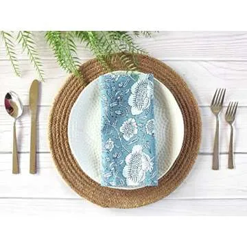 Show moreIntroducing the Soft Cotton Napkins Set by Craftbot – an elegant and eco-friendly choice for every table setting! Measuring 18x18 inches, these hand-crafted napkins are designed with love and care in Jaipur, showcasing traditional Indian block printing techniques. Each piece, made from 100% lightweight cotton, features stunning paisley and floral patterns that not only enhance your dining experience but also showcase exquisite craftsmanship. With their beautiful greyish blue hues, these napkins are not just practical but also a beautiful addition to your home decor. Perfect for everyday use or special occasions, they embody style, functionality, and a commitment to sustainability.