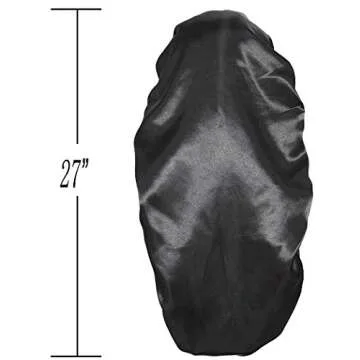 Show more Introducing the ultimate in hair care protection while you sleep: our luxurious satin bonnet designed specifically for long hair. Made from a high-quality silk blend satin fabric, this soft and comfortable bonnet ensures that your precious locks stay in place throughout the night. With a thoughtful design that measures approximately 27 inches in length, it can easily accommodate various hairstyles including braids, dreadlocks, and even rollers. Not only does it offer a snug fit, but its color palette is also subtly beautiful, making it an attractive addition to your nighttime routine.