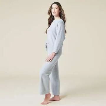 Show more Indulge in the luxurious comfort of our beautifully crafted crew neck top and matching marshmallow pants, designed with exquisite attention to detail. Made by Softies, this outfit features stylish bracelet sleeves and meticulously crafted reverse shoulder seams that add a unique touch. The soft, cozy fabric blend includes 51% polyester and 49% nylon, ensuring that this ensemble becomes softer and more luxurious with every wash. Perfect for lounging at home or sleeping in, this two-piece set not only promises relaxation but also ensures you're looking stylish should unexpected guests drop in.