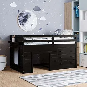 - Modern, Clean Design: The elegant slatted headboard and matching hardware add a contemporary touch, making this loft bed a stylish addition to any child's bedroom.
