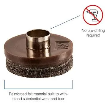 Show moreExperience the ultimate in furniture protection with the SoftTouch 1" Round Nail-On Furniture Glides. Designed specifically for wooden furniture, these innovative glides are your first line of defense against scratches and marks on a variety of hard surfaces, including hardwood, tile, vinyl, and laminate. Each glide is expertly engineered with a durable felt bottom that ensures gentle movement without damaging delicate flooring while maintaining a firm grip that stands the test of time.