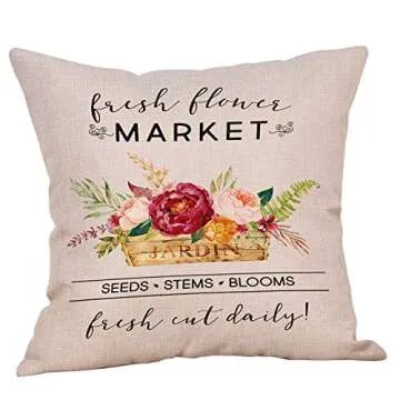 Softxpp Fresh Flower Market Fresh Cut Throw Pillow Cover 18" x 18" Cotton Linen