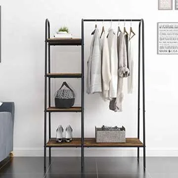 Its multifaceted use allows it to act as a free-standing closet organizer, a garment rack, or even an open display shelf. Be it in the entryway, living room, bedroom, or any small space, this clothing rack complements your decor while serving functional purposes. Easy to assemble, users will appreciate the thoughtful design that makes installation a breeze — just remember to keep screws loose until everything is in place!