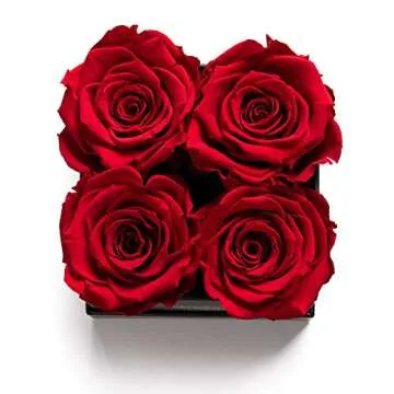 Soho Floral Arts | Roses In A Box | Genuine Roses that Last for Years (Black Square 4ct, Red) | Mothers Day Gifts