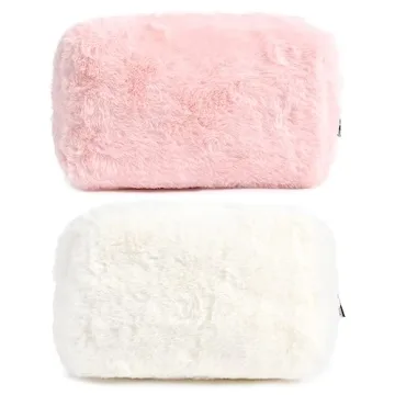 SOIDRAM 2 Pieces Makeup Bag - Plush Pink & White Organizer for Travel