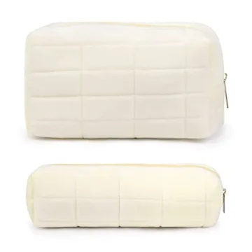 Introducing the SOIDRAM Makeup Bag Checkered Cosmetic Bag, a chic and practical solution for all your beauty essentials. This stunning set includes two bags: a spacious large capacity makeup pouch and a compact makeup brush storage bag, perfectly designed for the modern individual who balances style with functionality. The plush white fabric combined with a distinctive checkered pattern guarantees that you not only stay organized but do so with flair. Whether you're traveling or just need...