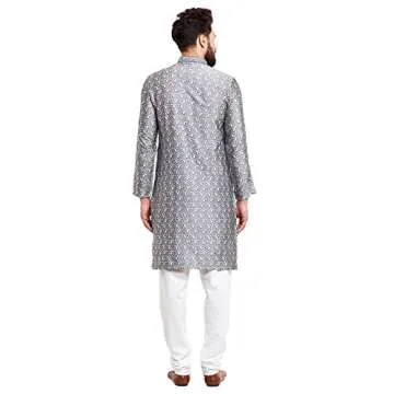 Sojanya (Since 1958, Men's Jacquard Silk Kurta & Churidaar Pyjama Grey